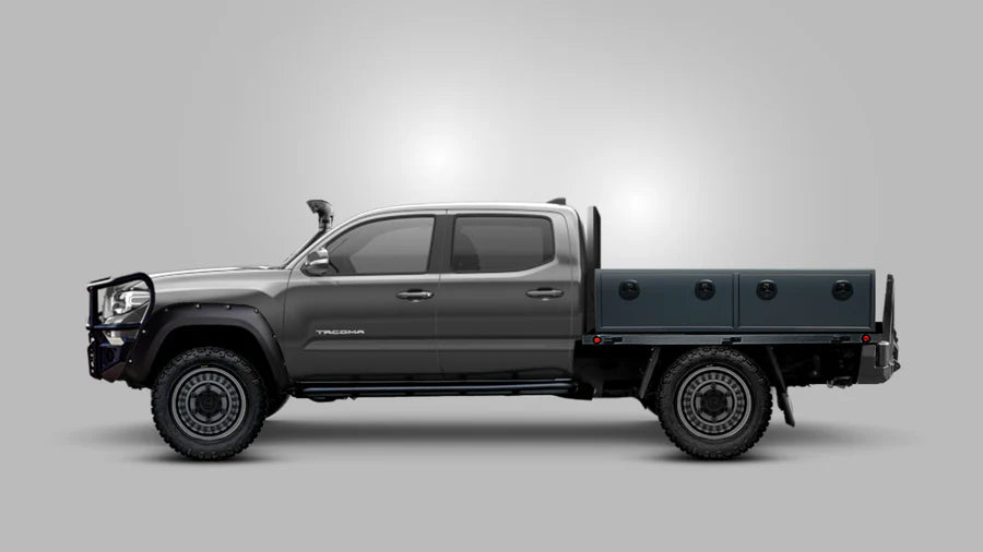 Turn your truck into a transformer with our custom and aftermarket truck and overland fabrication services. We outfit your rig by swapping out your OEM truck bed with a Next Jump flatbed tray system that uses a universal L-Track mount system to swap in or out whatever you need. Plus, our flatbeds are lightweight, which helps keep your vehicle from being overweight no matter how you decide to use it. Build the perfect rig for your budget and bucket list.