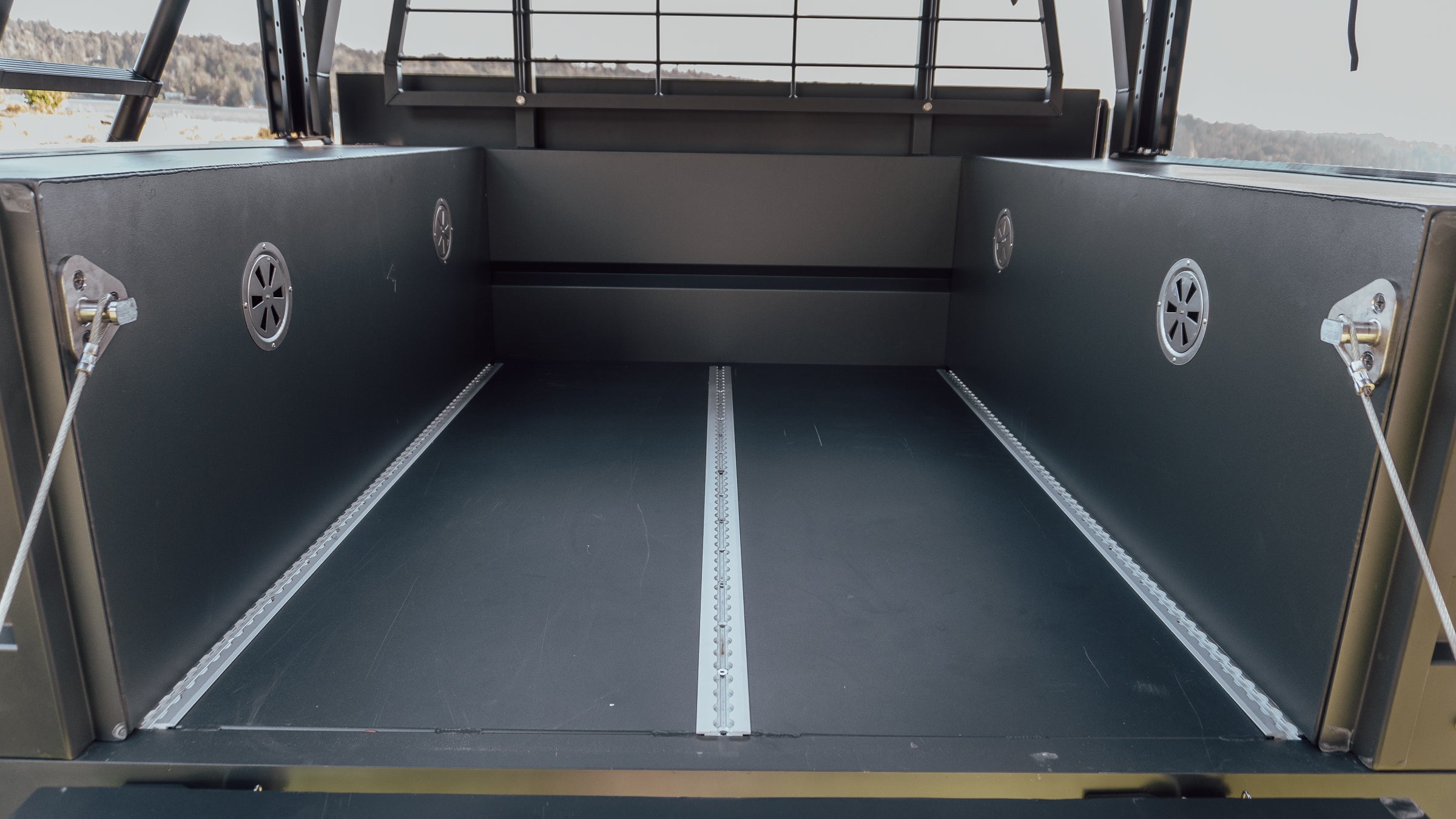 The platform includes five rows of L-track for easy configuration and a removable drop side design that one person can manage. The trailer’s steel and welded chassis, combined with off-road leaf spring suspension, ensures durability and performance.