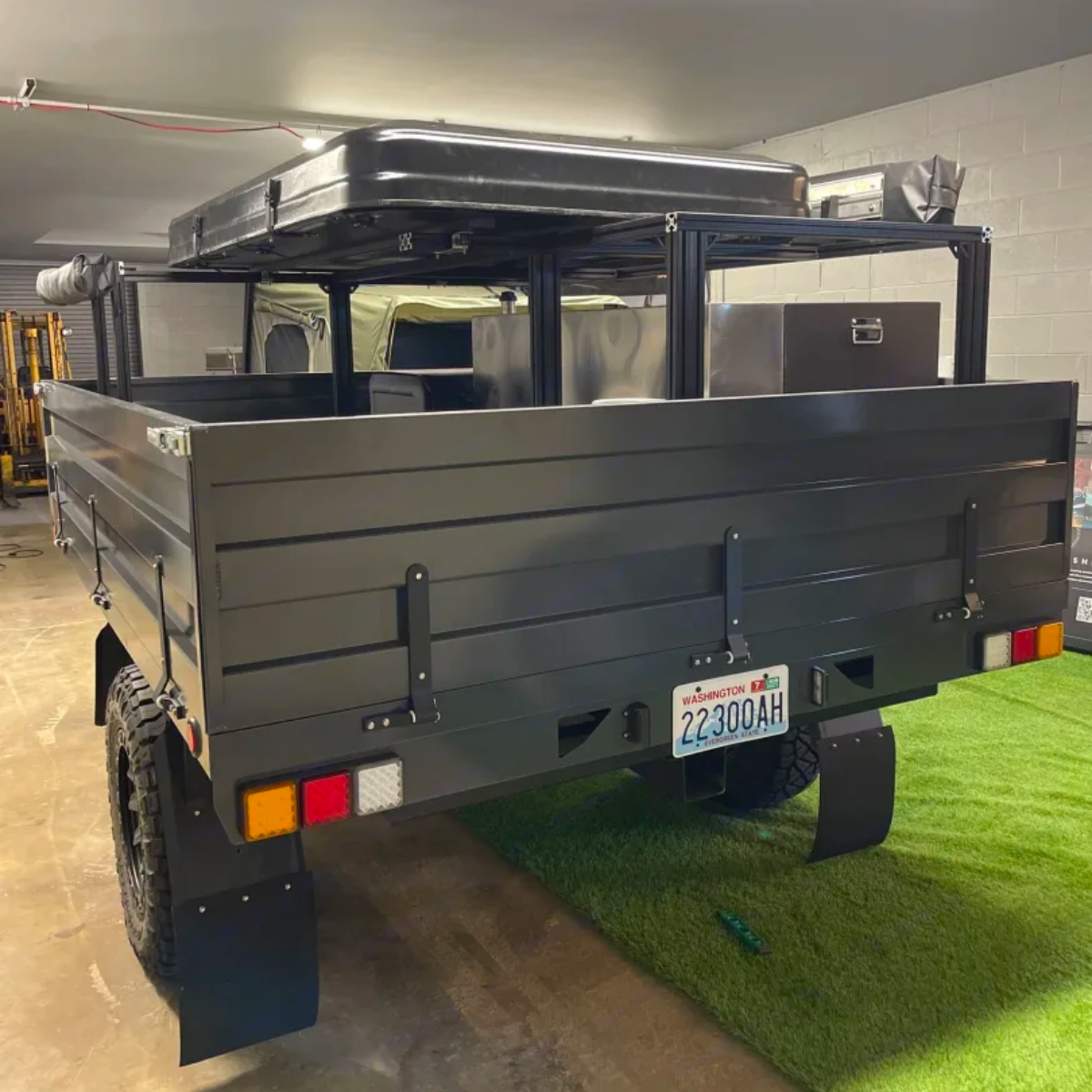 Next JumpFull-Size Regular Trailer -86.61"W x 78"L x 21.4"H Flatbed Overland Trailer Chassis Build with detachable drop sides and Australian Jacks.